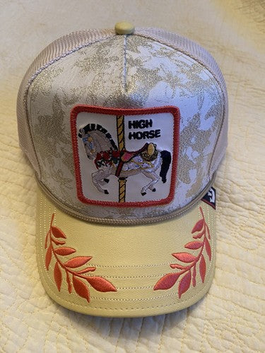 Esta gorra premium en tono beige claro destaca por su diseño detallado y elegante. Incorpora un parche frontal bordado con ilustración de caballo, que transmite fuerza, tradición y carácter. El panel frontal cuenta con bordados decorativos tipo hojas, aportando un acabado artesanal y sofisticado.